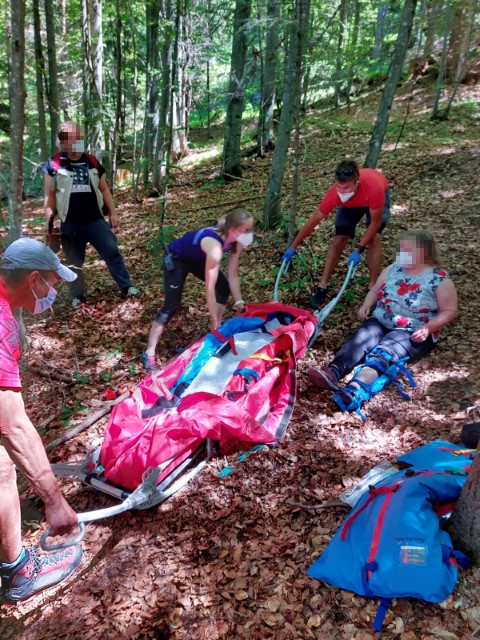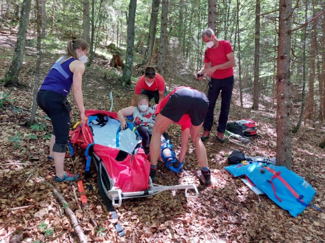 Die alarmierte Bergrettung schiente das Gelenk und brachte die Frau mittels Gebirgstrage zum Einsatzfahrzeug und so ins KH Kufstein.