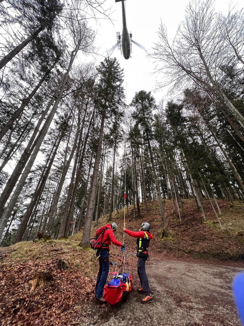 Zwei Bergretter blieben bei dem Verstorbenen und unterstützten die Polizei und die Mannschaft der Libelle Tirol (Hubschrauber Polizei) bei der Bergung des Leichnams.