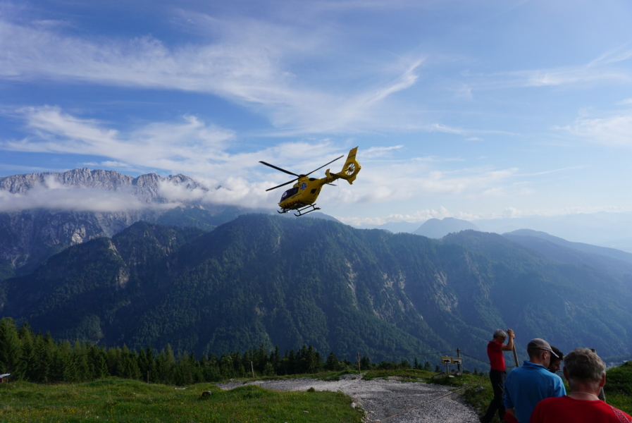Eine im Abstieg befindliche Wanderin war im Bereich der Vorderkaiserfeldenhütte gestürzt und hatte sich erhebliche Verletzungen im Gesicht zugezogen. Sie wurde von vier Mitgliedern der Bergrettung versorgt und für den Abtransport vorbereitet. Während des Abtransports im Einsatzfahrzeug im steilen Gelände verschlechterte sich allerdings der Zustand (Schwellung im Gesicht, Übelkeit, Krippeln in den Armen), worauf für den weiteren Abtransport der Notarzthubschrauber alarmiert wurde. Die Mannschaft des Heli 3 verbrachte die Dame ins Krankenhaus.