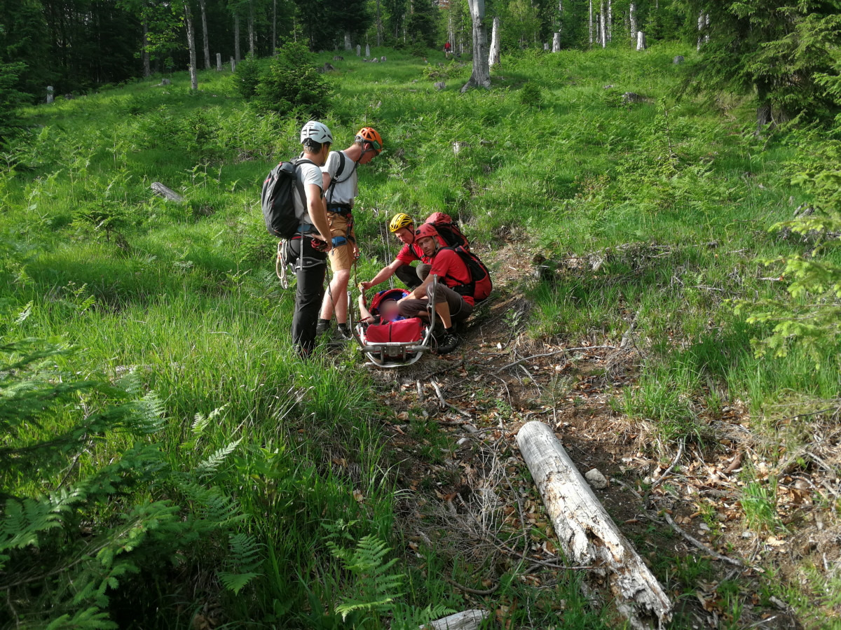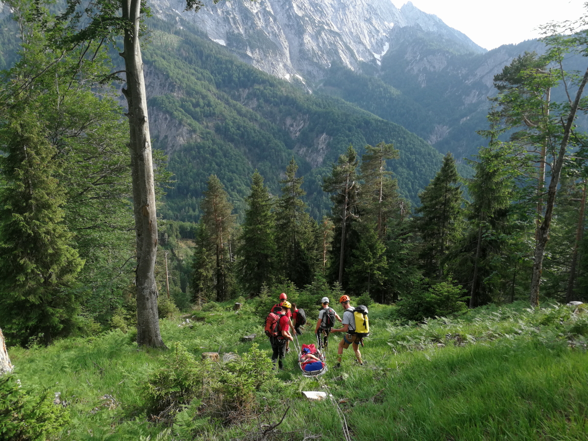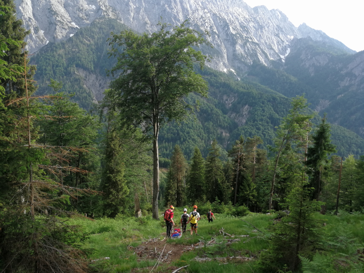 Stock und Stein und durch den steilen Wald, von Bergrettern begleitet
