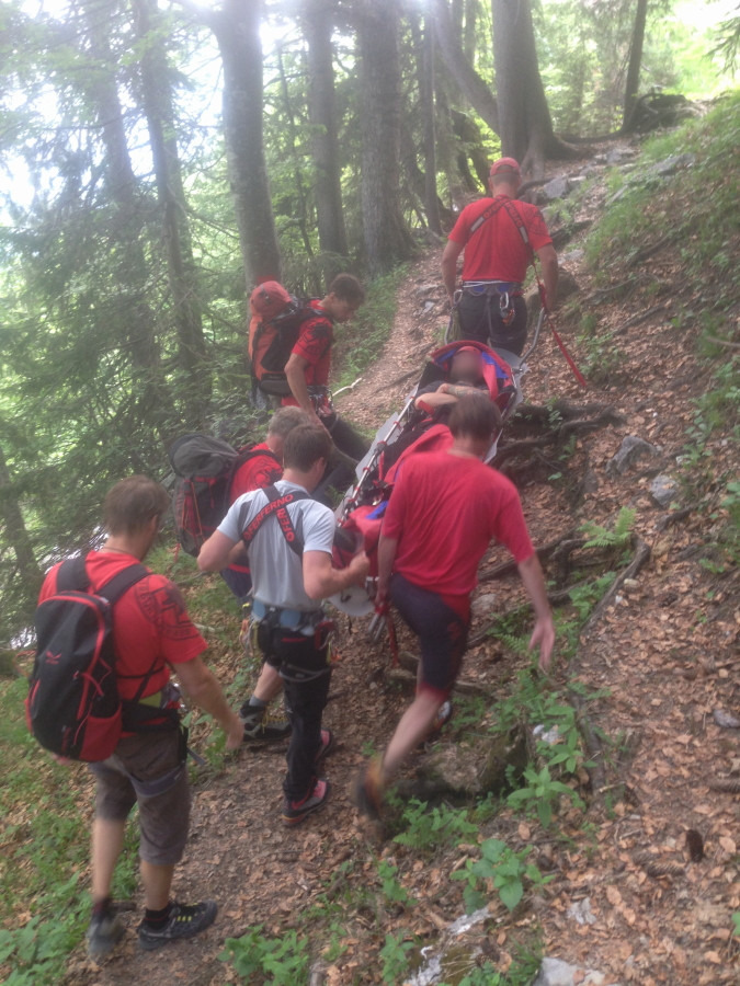 dort zu Fuß zum Verletzten zu gelangen. Der Abtransport des Patienten