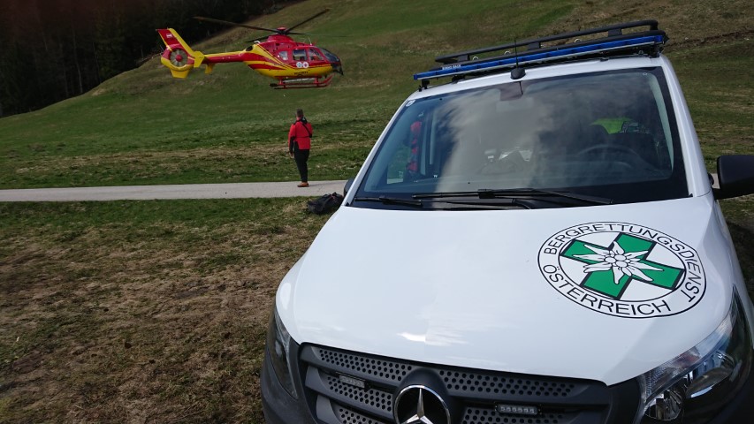 Die Dame gehörte zu einer Wandergruppe, die am Brennkopf oberhalb von Walchsee gerade im Abstieg begriffen war. Ein unglücklicher Schritt, und das linke Sprunggelenk war unbestimmten Grades verletzt. Zu ihrem Glück in dieser Situation gehörte auch ein erfahrener Bergretter zu ihrer Gruppe. Dieser setzte einen Notruf ab und sorgte für klare Information für die ausrückenden Bergretter und Bergretterinnen ob des Zustands der Verletzten und die örtlichen Begebenheiten.