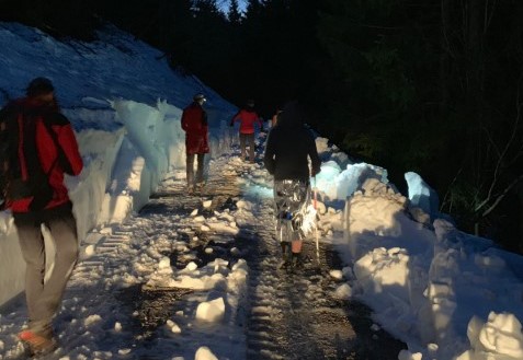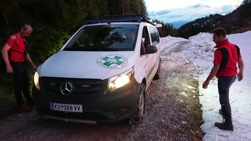 Ein Notruf wurde abgesetzt. Gleichzeitig erkannte ein nicht weit entfernter Almbesitzer die missliche Lage der Gruppe. Er geleitete sie in Absprache mit der inzwischen angerückten Bergrettung am Wandberg vorbei, bis sie auf das auffahrende Einsatzfahrzeug trafen. Ausgekühlt aber ansonsten unversehrt überstanden die drei ihr Abenteuer.